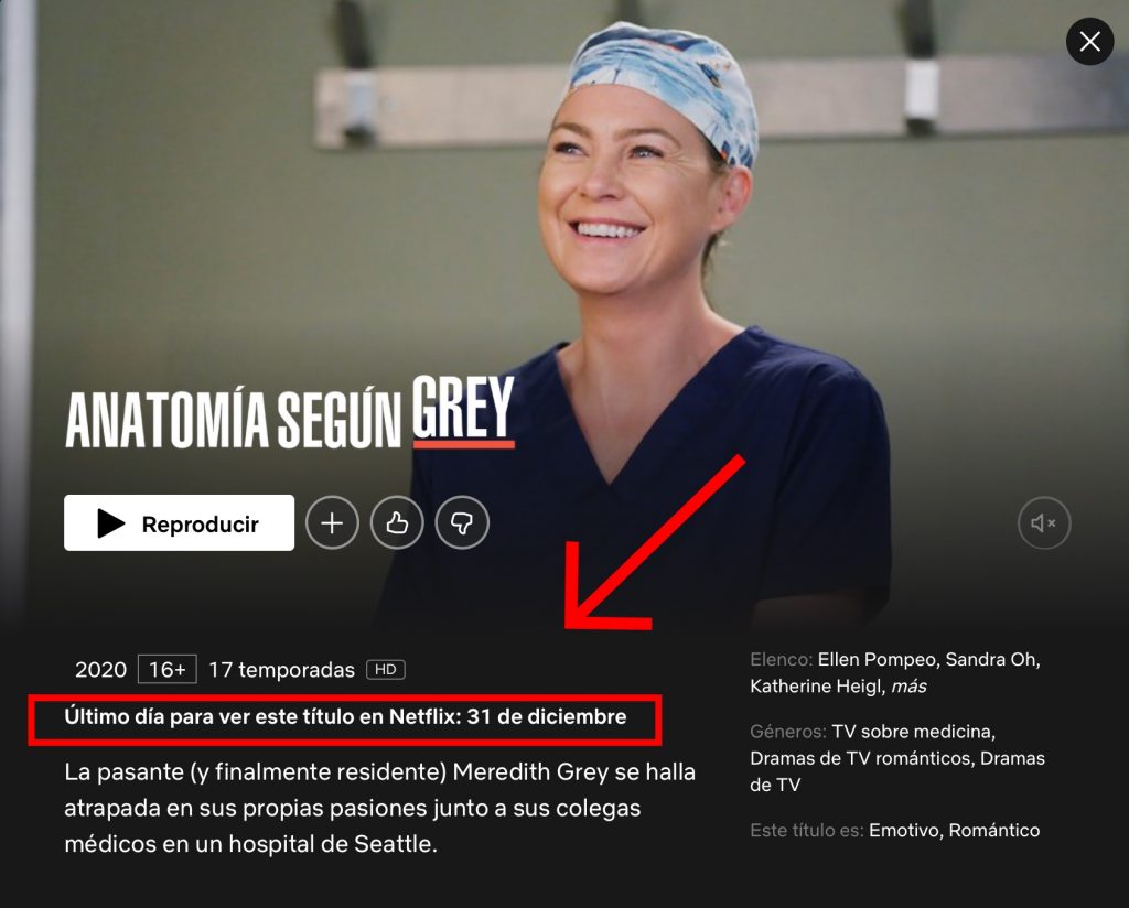 Y es que la serie protagonizada por Ellen Pompeo y toda su cachá de temporadas le dirán shaolin a la plataforma más popular de streaming el 31 de diciembre.