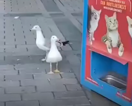 En Turquía, un comportamiento inusual de gaviotas comenzó a llamar la atención en redes sociales. Algunas de estas aves fueron registradas imitando el maullido de los gatos para activar máquinas dispensadoras de alimento destinadas a felinos callejeros, instaladas en distintos puntos urbanos.
