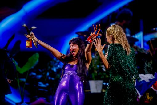 Li Saumet, vocalista del grupo musical colombiano, Bomba Estéreo, recibe las gaviotas de plata y de oro en la Quinta Vergara, durante la segunda noche del Festival Internacional de la Canción de Viña del Mar 2026.