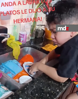Un video viral muestra el momento exacto en que la jerarquía doméstica se reajustó para un niño de unos 5 o 6 años. Tras intentar delegar sus responsabilidades a su hermana de forma poco caballerosa, su madre intervino con una medida tan pedagógica como estricta. El menor terminó subido a una silla frente al lavaplatos, enfrentándose a la loza sucia entre lágrimas y quejas, mientras su madre lo grababa para posteriormente exponerlo en redes sociales..